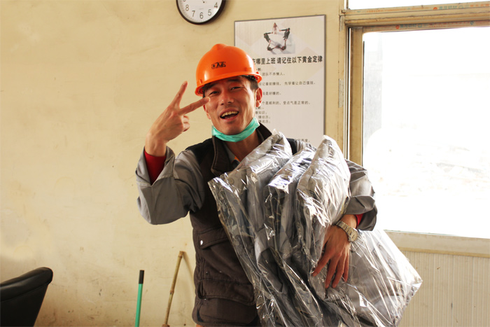 当天上午,聚集在管理部的工厂员工都领到了自己的新棉衣,一个个都激动不已。“与我们的旧棉衣相比,新发的棉衣更加厚实,穿起来暖和多了!”王师傅和其他员工交口称赞,也纷纷表达着感激之情:“冬天来了,给我们发棉衣确实是把温暖送到我们心坎上了!”