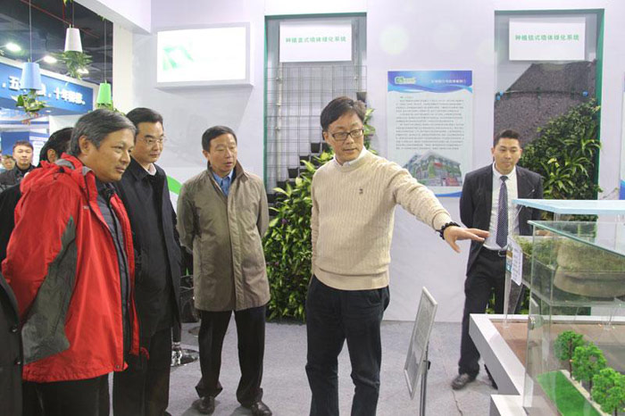 开幕式正式结束后,梁俊强先生、顾小平先生以及史志军先生等领导对本次展会海绵城市、立体绿化、能源设备等展位进行了参观,听取并了解了产品的详细信息。尤其是对立体绿化方面,史志军先生表示,立体绿化不错,但如今城市土地面积紧张,我们更应该做的是如何使用更少的地面进行绿化工作,也可以将立体绿化与互联网联合起来,创造更好的效果。在随后的能源设备参观过程中,领导们^关心能源设备的节能功效,并对设备使用的各项技术进行了详细的询问。